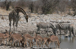 Accompagnés de votre guide, rendez-vous aux différents points d’eau aménagés, alimentés par des puits artésiens qui attirent les girafes, les impalas, les phacochères, les springboks, les gnous bleus, les grands koudous et les zèbres. À la saison sèche, vous aurez de nombreuses occasions d’approcher les animaux sauvages tels que les lions, les oryx et les éléphants. Le Parc national d’Etosha offre un spectacle fascinant.