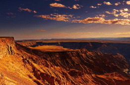 Puis à une dizaine de kilomètres, visitez Kolmanskop, un village fantôme au coeur du désert construit pour les chercheurs de diamants. Au début du XXème siècle, un riche gisement de diamants est découvert dans la région, Kolmanskop propsère jusqu’en 1930 puis connaît l’abandon total en 1954. Aujourd’hui, vous découvrez un village abandonné où les bâtiments, l’ancien hôpital et les maisons coloniales, ouverts aux quatre vents sont envahis par le sable du désert. Après ce détour jusqu’à l’océan, votre voyage se poursuit au cœur du deuxième plus grand canyon du monde, le Fish River Canyon. Un gigantesque ravin de 161 km de long sur 27 km de large et d’une profondeur de 550 mètres.