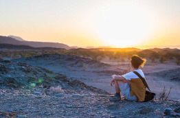 Sesriem, située près du Parc national du Namib-Naukluft, n’est pas une ville à proprement parler, mais plutôt une porte d’entrée vers le désert namibien. Vous y apercevez déjà le relief ocre qui s’étend à perte de vue, un paysage que vous aurez tout le loisir d’admirer pendant les 2 prochains jours. Le désert du Namib est le plus vieux désert au monde. Un spectacle époustouflant vous y attend, entre les impressionnantes dunes de sable de Sossusvlei, les déserts de sel, et les arbres multicentenaires de la Deadvlei. Les dunes ocre, changeant de couleur avec le soleil et de forme avec le vent, garantissent un paysage à couper le souffle à tout moment de la journée. En fin d’après-midi, ne ratez pas le magnifique coucher de soleil depuis votre camp.