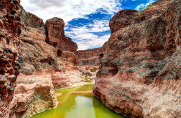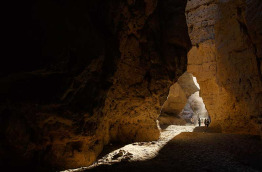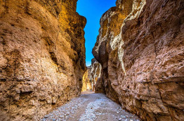 L’après-midi, vous partez pour une randonnée de 4 km dans le canyon de Sesriem. Creusé par la rivière Tsauchab il y a 2 millions d’années, ce canyon permet d’admirer de superbes formations rocheuses. Le nom « Sesriem » signifie « 6 lanières » en néerlandais, et fait référence à la profondeur du canyon. Pour y puiser de l’eau, 6 lanières de cuir étaient nécessaires pour fabriquer une corde assez longue. Des oiseaux et antilopes viennent se nourrir dans le canyon. Entre novembre et mars, les pluies permettent à la rivière de se remplir, formant une piscine naturelle entre les roches.