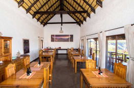 Le bâtiment principal, tout près de la piscine, abrite le restaurant, le bar et un salon.
