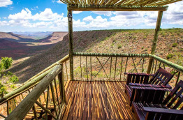 Perché au bord du plateau de Grootberg, le lodge offre l'une des plus belles vues de Namibie, sur la magnifique vallée de Klip River.
