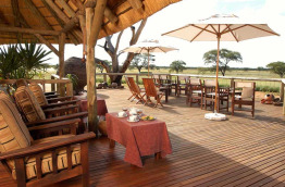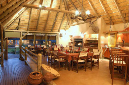 Les repas sont servis à la carte dans un restaurant de style africain, largement ouvert sur l’extérieur, ou sur la belle terrasse en bois, face au point d’eau où les animaux viennent boire à toute heure du jour ou de la nuit.