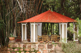 Le lodge est niché dans un magnifique jardin tropical, verdoyant toute l'année grâce à l'eau qui ruisselle du plateau. Les bungalows sont nichés sous de magnifiques bambous géants, des palmiers et des arbres centenaires.