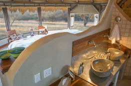 Les 8 chalets de plus de 100 m2 chacun sont éloignés les uns des autres afin d'assurer une intimité parfaite. De forme ronde, ils abritent chacun un patio extérieur, une grande chambre et une salle de bains avec une douche intérieure et une extérieure. Tous les pans de murs dirigés vers la réserve sont vitrés, assurant une vue panoramique sur le bush. Minibar, nécessaire à thé et café, accès internet Wi-Fi et téléphone assurent un confort parfait.