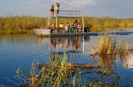 Départ matinal pour une balade en bateau sur l'Okavango organisée par le lodge (non privative). Laissez-vous glisser sur les eaux tranquilles du fleuve, écoutez votre guide expérimenté vous raconter l'histoire de la Namibie, et vous donner de nombreuses informations intéressantes sur la faune et la flore locales. Votre découverte se poursuit par un petit safari dans la réserve naturelle de Mahango, considérée comme l’une des meilleures destinations safari de Namibie, notamment pour les amateurs d’oiseaux. Suivez la route panoramique pour observer de nombreux éléphants, des hippopotames et des crocodiles au bord de la rivière.