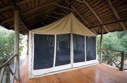 Les 20 tentes sont construites le long de l’escarpement et surplombent toutes la rivière, il y a 7 doubles, 9 twins, 2 triples et 2 tentes familiales. Elles sont bâties sur un beau plancher en bois sur pilotis, prolongé par une terrasse privative avec un lit de repos ou de confortables fauteuils, moustiquaires à baldaquin, salle de bain avec douche et WC, coin bureau.