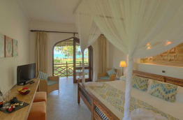Le BlueBay Beach Resort & Spa dispose de 106 chambres, réparties à travers les jardins de l’hôtel. Elles se trouvent dans plusieurs grands bungalows aux toits de makuti, et sont décorées dans le style zanzibar, avec de beaux meubles en bois sculpté.
