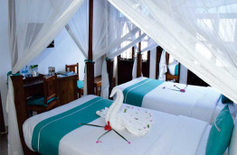 Enfin, les chambres Family situées dans l’aile restaurée sont spacieuses et élégantes, elles conservent le style de Zanzibar avec leur balcon en bois. Elles disposent d’un lit double et d’un lit simple.