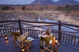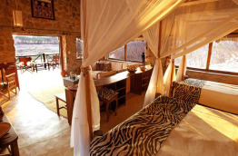 Ce lodge a beaucoup de charme mais son principal atout est sa situation au bord de la rivière Great Ruaha, légèrement en hauteur, ce qui lui assure une vue extraordinaire et la possibilité de continuer l’observation des animaux à tout moment de la journée.