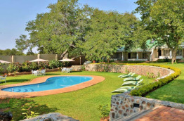 Safaris en 4x4 matin et après-midi. Temps libre à midi pour profiter de la piscine dans laquelle viennent boire les éléphants !