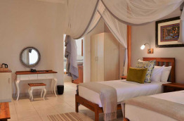 Elles sont décorées avec beaucoup de goût dans des tons de beige et bleu très lumineux. Elles disposent toutes d’une salle de bains avec douche, baignoire pour certaines, air conditionné et moustiquaires, coffre, nécessaire à thé et café.