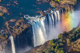 C'est vues du ciel que les Chutes Victoria se révèlent réellement : on comprend alors la puissance des flots qui arrivent sous forme d'un fleuve large et paisible pour se jeter dans une faille étroite et profonde. Le fleuve a ensuite creusé un profond canyon pour continuer sa route vers l'Océan...